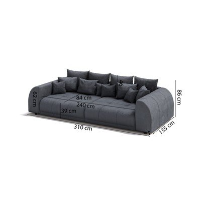 Con rivestimento in velluto a coste, grigio scuro, a quattro posti, larghezza totale 310 cm