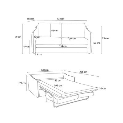 Per il riposo quotidiano/allungabileGrigio scuroA due postiLarghezza totale 178 cmProfondità totale 102 cmProfondità della seduta 52 cm
