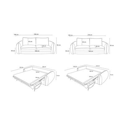 Per il riposo quotidiano/allungabileCon federa rimovibile Grigio scuroA tre postiLarghezza totale 236 cmProfondità totale 106 cmProfondità della seduta 58 cm
