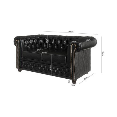 Con rivestimento in finta pelle, chesterfield, nero, idrorepellente/adatto per animali/antimacchia, a due posti, larghezza totale 148 cm