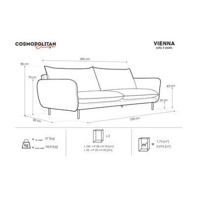 sedute davvero comode: questi sono i principali vantaggi del divano Vienna. Può ospitare comodamente fino a 4 membri della famiglia o un gran numero di visitatori.