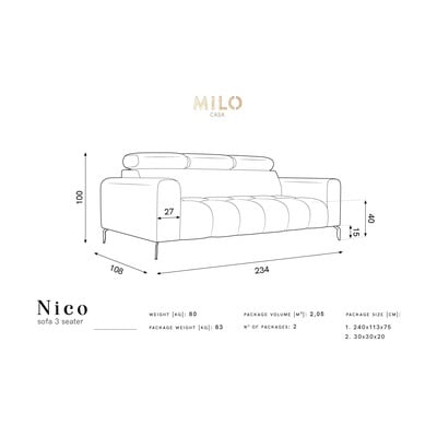 Il divano di Milo Casa si fa ammirare per la sua struttura. La superficie è resistente all'abrasione in misura superiore alla media, garantendo una maggiore durata. È composto al 100% da poliestere ricoperto da uno strato idrofobico che impedisce l'assorbimento dei liquidi. Vanta la certificazione Oeko Tex, che garantisce che il divano è privo di sostanze che influiscono negativamente sulla salute umana.