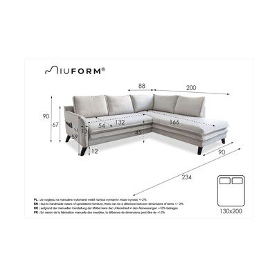 AllungabileCon penisola a destra/a LAzzurroA quattro postiLarghezza totale 234 cmProfondità totale 200 cmProfondità della seduta 54 cm