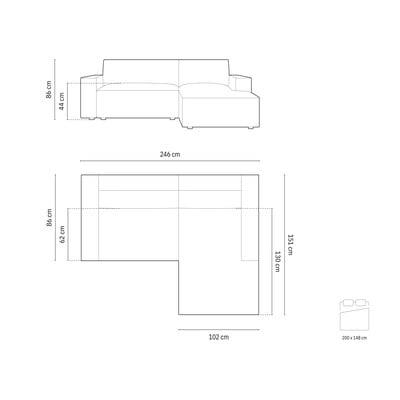 Con rivestimento in boucléAllungabile/con contenitoreCon penisola a destra/con chaise loungeGrigio chiaroA tre postiLarghezza totale 246 cm