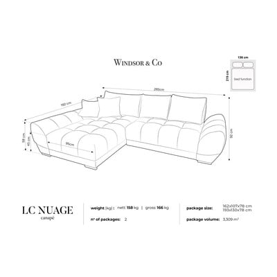 Il divano è disponibile in due versioni: angolo sinistro e angolo destro.