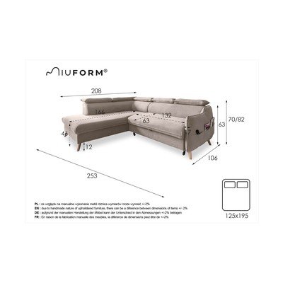 Reclinabile/allungabileCon penisola a sinistra/a LGrigio scuroA quattro postiLarghezza totale 253 cmProfondità totale 208 cmProfondità della seduta 63 cm