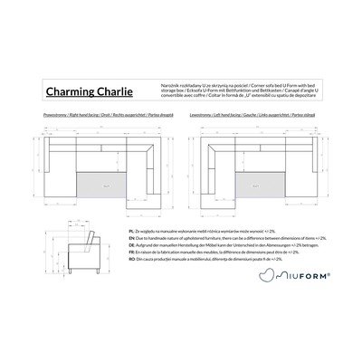 Divano angolare Charming CharlieCon rivestimento in ciniglia, allungabile/con contenitore, con penisola a sinistra/a U, color antracite, a cinque o più posti, larghezza totale 302 cm