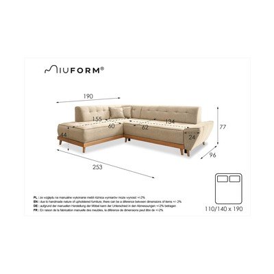 Allungabile/con contenitoreCon penisola a sinistra/a LGrigio scuroA quattro postiLarghezza totale 253 cmProfondità totale 190 cmProfondità della seduta 62 cm