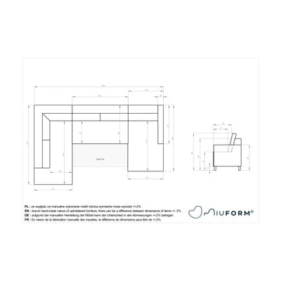 Divano angolare Lofty LillyCon rivestimento in velluto a coste, allungabile/con contenitore, con penisola a sinistra/a U, blu scuro, a cinque o più posti, larghezza totale 303 cm
