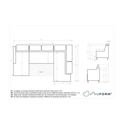 Con rivestimento in vellutoReclinabile/allungabile/con contenitoreCon penisola a sinistra/a UGrigio chiaroIdrorepellente/adatto per animaliA cinque o più postiLarghezza totale 321 cm