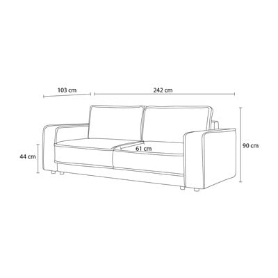 Con rivestimento in cinigliaAllungabile/con contenitoreBeigeA tre postiLarghezza totale 242 cm