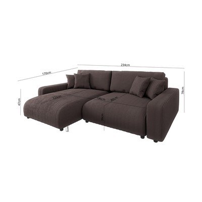 Con rivestimento in velluto a costeAllungabile/con contenitoreCon penisola a destra/con penisola a sinistra/con composizione variabile/con chaise loungeMarroneA tre postiLarghezza totale 234 cm