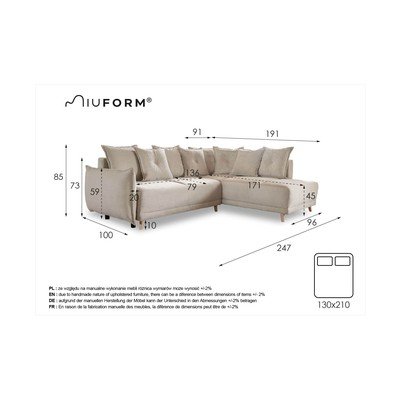 Con rivestimento in velluto a costeAllungabile/con contenitoreCon penisola a destra/a LVerdeA quattro postiLarghezza totale 247 cmProfondità totale 191 cmProfondità della seduta 79 cm