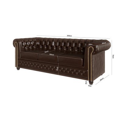 Con rivestimento in finta pellePer il riposo quotidiano/allungabileChesterfieldMarrone scuroIdrorepellente/adatto per animali/antimacchiaA due postiLarghezza totale 203 cm