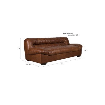 Con rivestimento in pelle, marrone, a tre posti, larghezza totale 214 cm