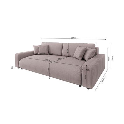 Con rivestimento in velluto a coste, allungabile/con contenitore, rosa chiaro, a tre posti, larghezza totale 234 cm