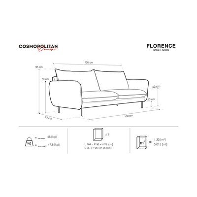 Il divano Florence di Cosmopolitan Design è un pezzo d'arredamento che invita a sedersi. Godrete del comfort offerto dalla sua costruzione accuratamente assemblata e dalla confortevole imbottitura. Il rivestimento è realizzato in piacevole velluto ed è morbido al tatto. Allo stesso tempo, il divano vanta un elevato valore Martindale.