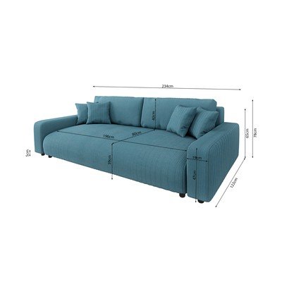 Con rivestimento in velluto a coste, allungabile/con contenitore, turchese, a tre posti, larghezza totale 234 cm