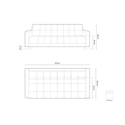 Con rivestimento in bouclé, allungabile/con contenitore, verde, a tre posti, larghezza totale 222 cm