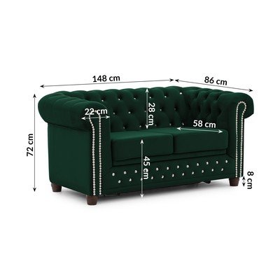 Con rivestimento in velluto, allungabile, chesterfield, verde, idrorepellente/antimacchia, a due posti, larghezza totale 148 cm