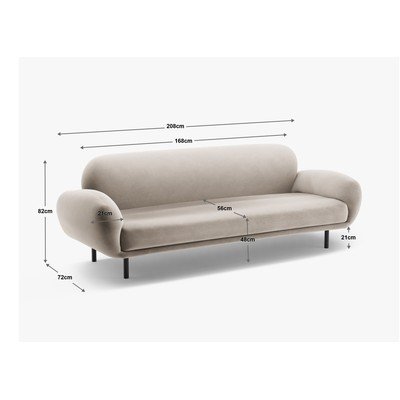 Con rivestimento in boucléVerdeA tre postiLarghezza totale 208 cmProfondità totale 72 cmProfondità della seduta 56 cm