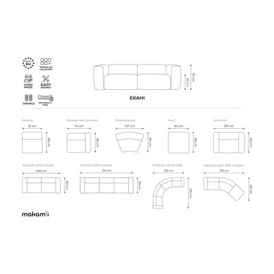Divano beige con rivestimento in velluto 228 cm Ekahi – Makamii
