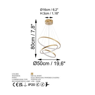 LED, in metallo, dorato, ø 50 cm, altezza totale 80 cm