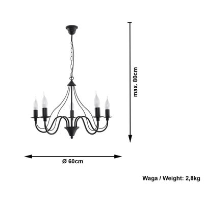Lampadario FioranoIn metallo, nero, ø 60 cm, altezza totale 80 cm