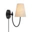 Il suo design consiste in una base a parete da cui si snoda un braccio arcuato che porta un paralume conico in tessuto. Gli elementi metallici del lampadario conferiscono all'insieme un aspetto classico.