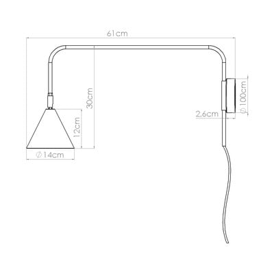 Lampada da parete nera con alimentazione a corrente Zylo – Sollux
