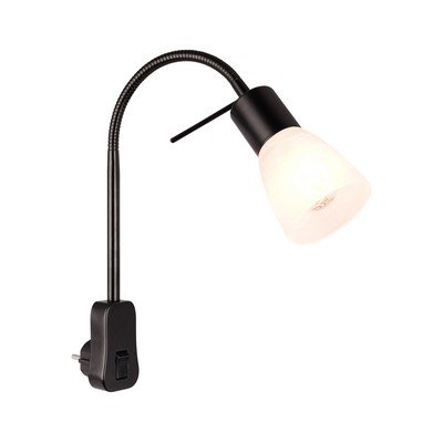 Con struttura flessibile, con alimentazione a corrente, in metallo/in vetro, nera, ø7 cm, altezza totale 40 cm
