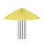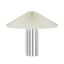 La parte inferiore della lampada è costituita da una base cilindrica con una caratteristica nervatura verticale, che le conferisce un aspetto elegante e strutturato. La forma complessiva della lampada ricorda un fungo, rendendola un interessante elemento solitario su un comodino, una cassettiera o una scrivania.