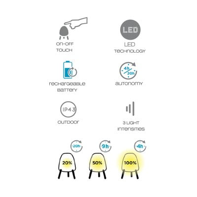 LED, in plastica, con alimentazione a batteria/con ricarica USB, con intensità regolabile, da tavolo , altezza totale 20 cm