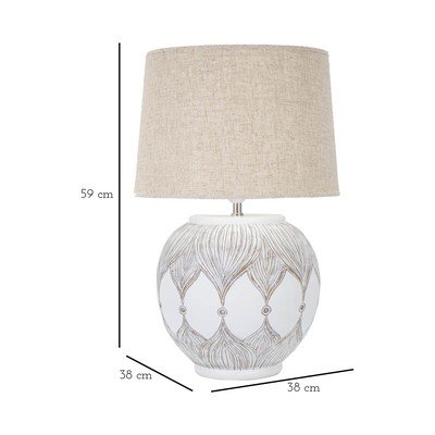 Con paralume in tessuto, in poliresina, con alimentazione a corrente, bianca/beige, altezza totale 59 cm