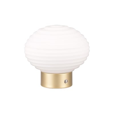 Lampada da tavolo EarlLED, con intensità regolabile, con paralume in vetro, in metallo/in vetro, con ricarica USB, bianca/dorata, altezza totale 14,5 cm