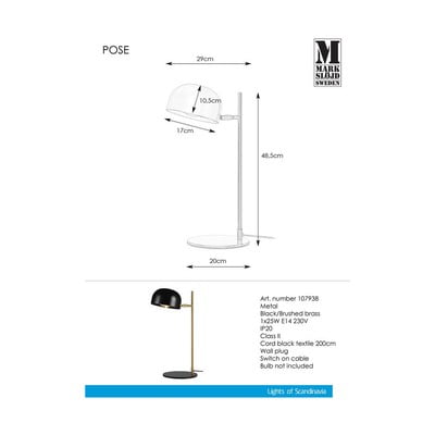 Lampada da tavolo PoseCon paralume in metallo, in metallo, con alimentazione a corrente, nera/dorata, altezza totale 49 cm