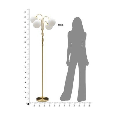Con paralume in vetro, bianca/dorata, altezza totale 176 cm