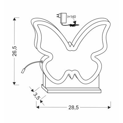 Lampada da tavolo per bambini ButterflyIn legno, con alimentazione a corrente, LED, larghezza totale 3,5 cm, lunghezza totale 26,5 cm, altezza totale 26,5 cm