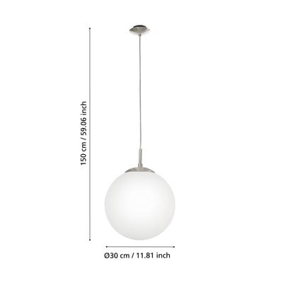 Con paralume in vetro, in metallo, bianco/argentato, ø 30 cm, altezza totale 110 cm