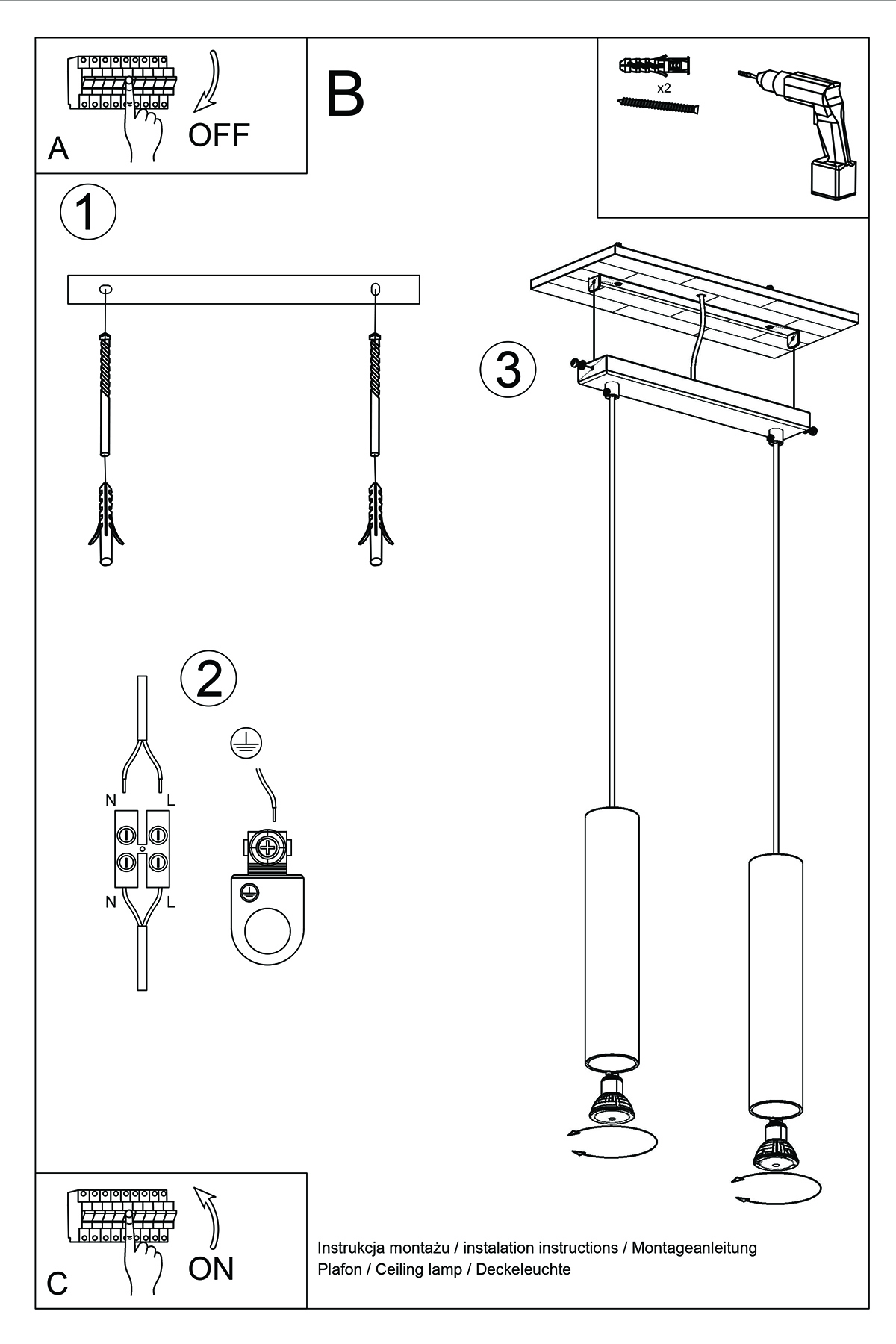 Lampadario CastroIn metallo, nero, 8x30 cm, altezza totale 85 cm