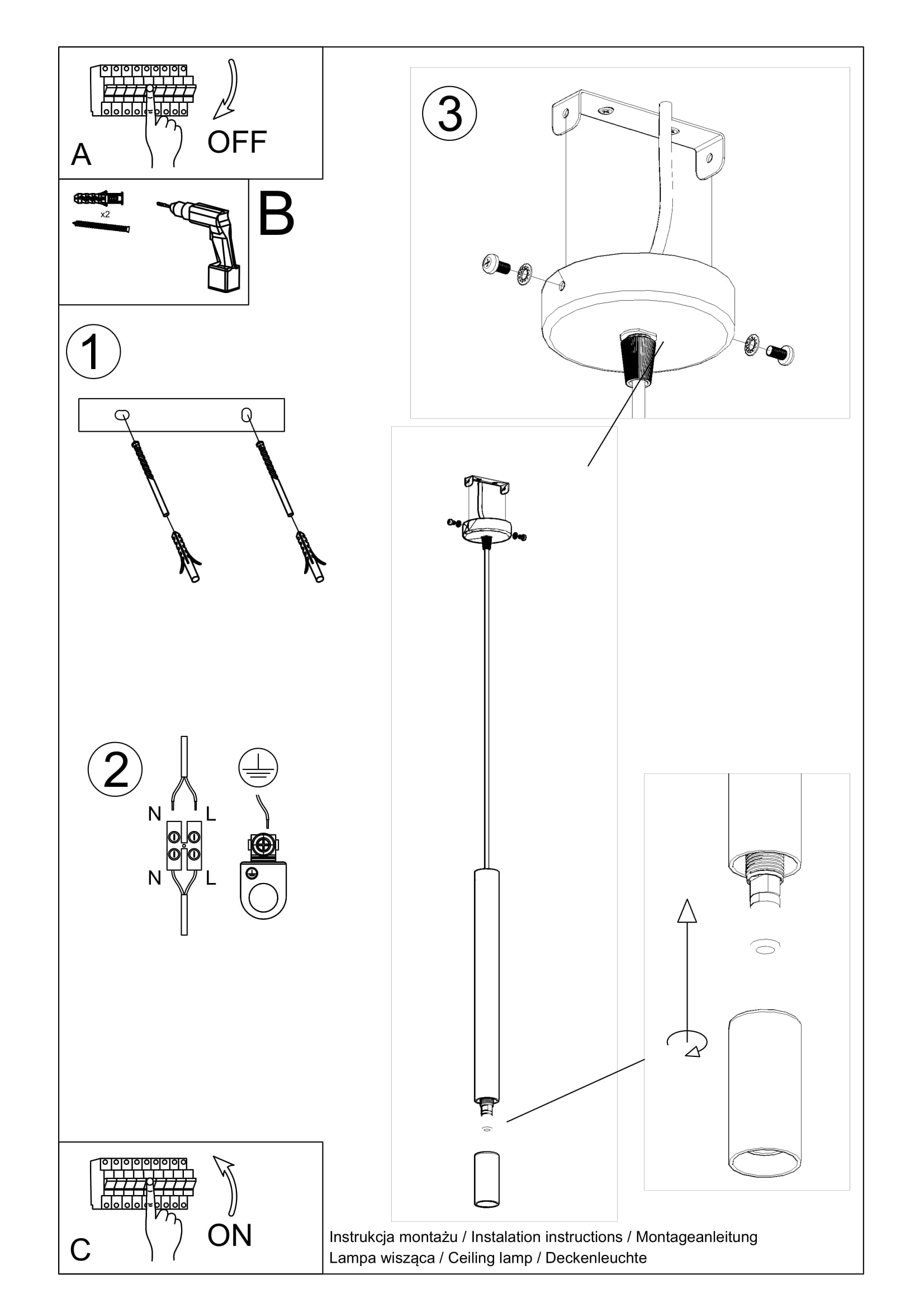 Lampadario nero in metallo ø 8 cm Vittoria – Sollux