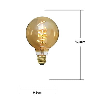 Con filamenti, con intensità regolabile, con luce bianca calda, con presa E27, 3 W, 150 lm, ø 9,5 cm