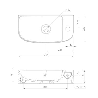In composito minerale, bianco, larghezza totale 44 cm, profondità totale 22 cm, altezza totale 10,5 cm
