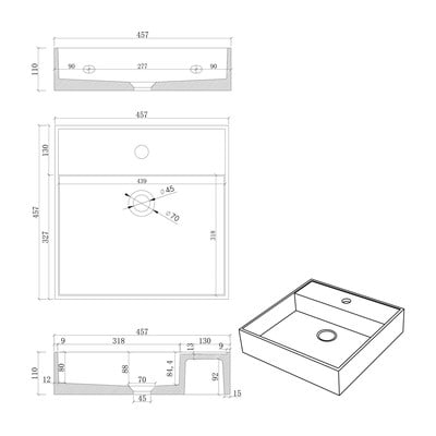 Lavabo QuadradoIn calcestruzzo, grigio/beige, larghezza totale 46 cm, profondità totale 46 cm, altezza totale 11 cm