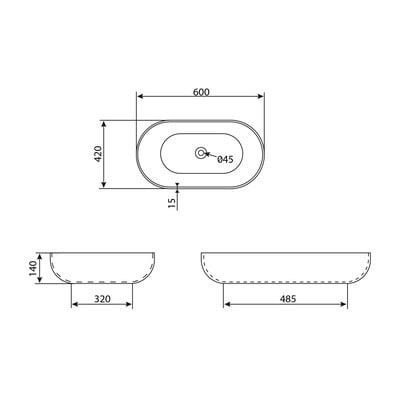 In ceramica, bianco, larghezza totale 60 cm, profondità totale 42 cm, altezza totale 14 cm