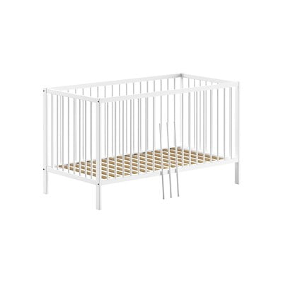 Lettino DINO70x140 cm, con sponde rimovibili/con altezza regolabile, con rete inclusa, in faggio massiccio, trattamento della superficie: verniciatura colorata, bianco