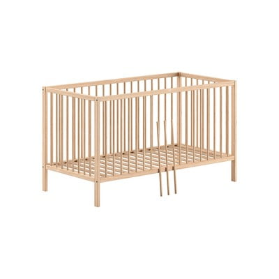 Lettino DINO70x140 cm, con sponde rimovibili/con altezza regolabile, con rete inclusa, in faggio massiccio, trattamento della superficie: laccatura, di colore naturale