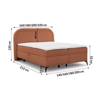 Letto boxspring arancione con contenitore 180x200 cm Ornes – Ropez