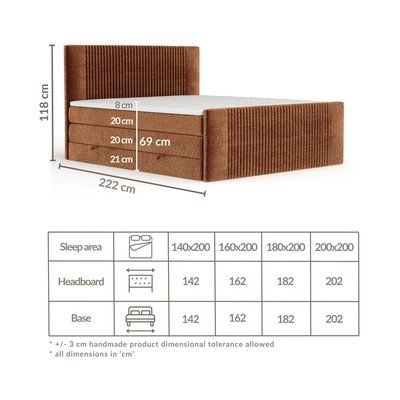Oltre al comfort, offre anche un pratico spazio per riporre gli oggetti, che ti aiuterà a tenere in ordine la tua camera da letto. La struttura solida e la capacità di carico di 240 kg assicurano la durata e la solidità del letto.