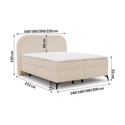 160x200 cm, con contenitore, imbottito, con materasso incluso/con topper incluso, con rivestimento in bouclé, beige